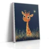 Magická noční žiráfka přináší do dětského pokoje exotiku a kouzlo hvězdného nebe. Tento uklidňující obraz na kvalitním plátně zachycuje vysokou žiráfu v nočním prostředí, která jako by dosahovala až ke hvězdám. Tmavé tóny a hvězdný motiv pomáhají dítěti překonat strach z tmy a vytvářejí pocit dobrodružství i klidu zároveň. Kvalitní tisk na odolném plátně zajišťuje dlouhou životnost a stálobarevnost. Dokonalý dárek pro malé snílky nebo jako uklidňující doplněk do dětského pokoje, který inspiruje ke krásným snům.