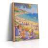 Živý pointilistický obraz zachycující idylickou atmosféru dovolené u azurového moře. Tisíce drobných barevných teček vytvářejí zářící pláž, křišťálově modrou vodu a bezstarostné postavy užívající si slunečního svitu. Technika pointilismu dokonale vystihuje třpyt moře, teplý písek a radost z odpočinku. Tento obraz na kvalitním plátně přinese do vašeho interiéru pocit léta, pohody a vzpomínky na dovolenou v každém ročním období.