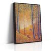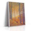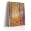 Nostalgický pointilistický obraz zachycující lavičky v parku obklopené podzimním listím. Tisíce drobných barevných teček vytvářejí hřejivou atmosféru podzimu, kde zlaté a měděné tóny listí kontrastují s tmavšími siluetami laviček a stromů. Technika pointilismu dokonale vystihuje melancholickou krásu podzimního parku a vytváří uklidňující scenérii. Tento obraz na kvalitním plátně přinese do vašeho interiéru nostalgii, klid a podzimní atmosféru.