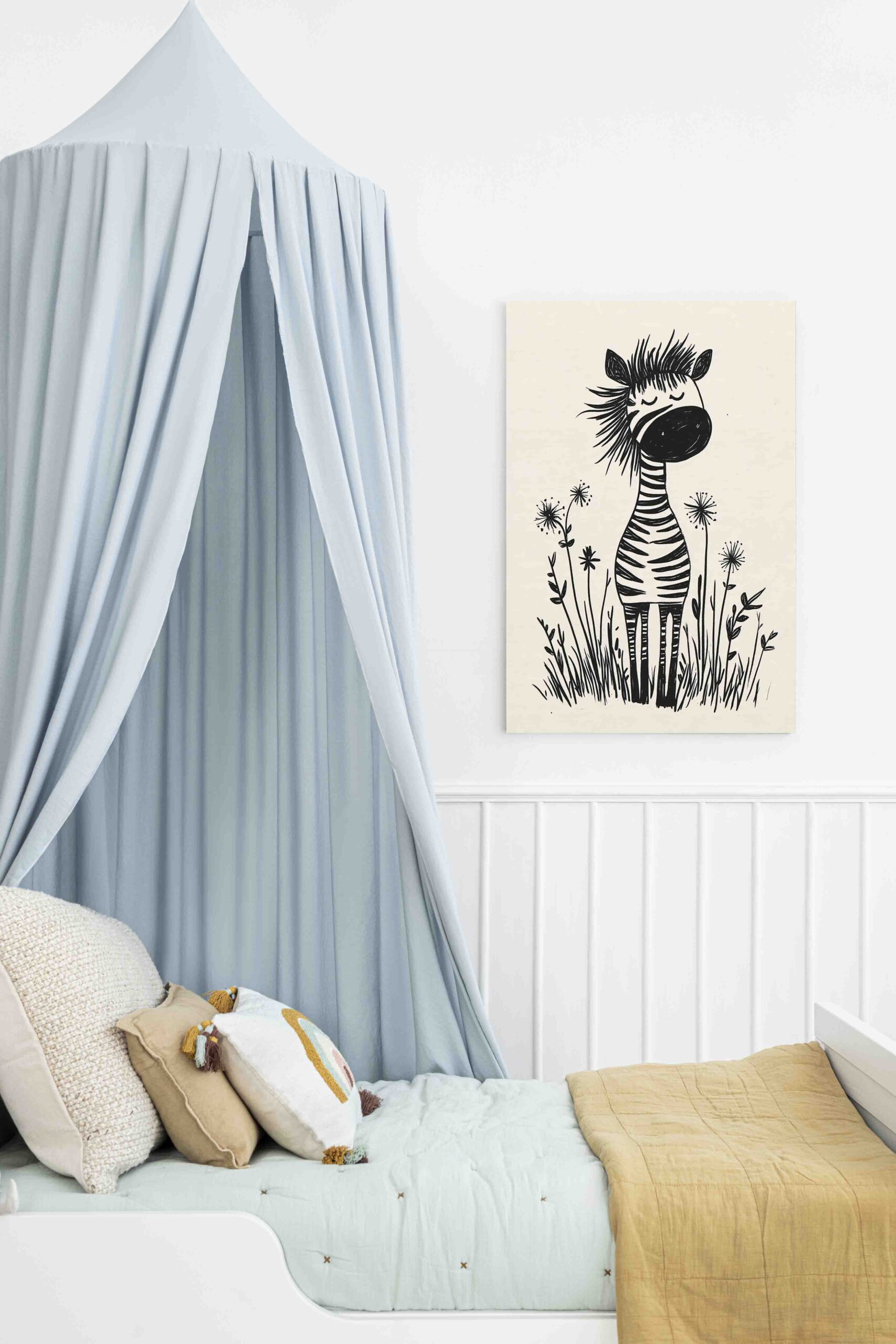 Přirozeně monochromatická zebra vytváří dokonalou harmonii v černobílém uměleckém provedení. Tento vizuálně přitažlivý obraz na kvalitním plátně zachycuje charakteristický pruhovaný vzor zebry, který je symbolem přírodní dokonalosti. Kontrast černých a bílých pruhů vytváří dynamický optický efekt, který stimuluje vizuální vnímání dítěte. Minimalistické zpracování tohoto exotického zvířete přináší do dětského pokoje moderní design a vzdělávací prvek zároveň. Dokonalá volba pro rodiče hledající dekoraci, která kombinuje přírodu s výrazným grafickým stylem.