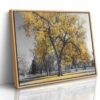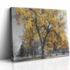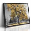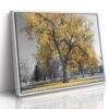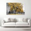 Obraz Černobílý strom se žlutým listím – Obraz na plátně