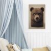 Detailní portrét hlavy medvídka upoutá pozornost svou expresivitou a přímým kontaktem s divákem. Tento umělecký obraz na kvalitním plátně se zaměřuje na výrazné rysy medvědí tváře, které jsou zpracovány s citem pro detail. Pohled medvídka vytváří okamžité emocionální spojení a přináší do dětského pokoje osobnost. Minimalistické zpracování s důrazem na výraz a texturu ocení i rodiče s vytříbeným vkusem. Univerzální design se hodí do různých stylů interiéru a zůstává relevantní, jak dítě roste.