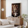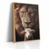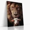 Mimořádný obraz „Lev s ovečkou“ zachycuje biblické proroctví o nadcházejícím Božím království v pozoruhodném uměleckém ztvárnění. Toto dílo na plátně zobrazuje mocného lva – symbol Krista jako Lva z Judy – ležícího v mírumilovném objetí s beránkem. Působivý kontrast mezi králem zvířat a zranitelným jehnětem evokuje izaiášovskou vizi dokonalého míru v Božím království. Mistrovské zpracování detailů obou zvířat zdůrazňuje jejich protichůdné přirozenosti spojené v harmonickém soužití. Obraz symbolizuje naději na Boží smíření všech protikladů a nastolení dokonalého řádu. Inspirativní dílo s hlubokým teologickým poselstvím.