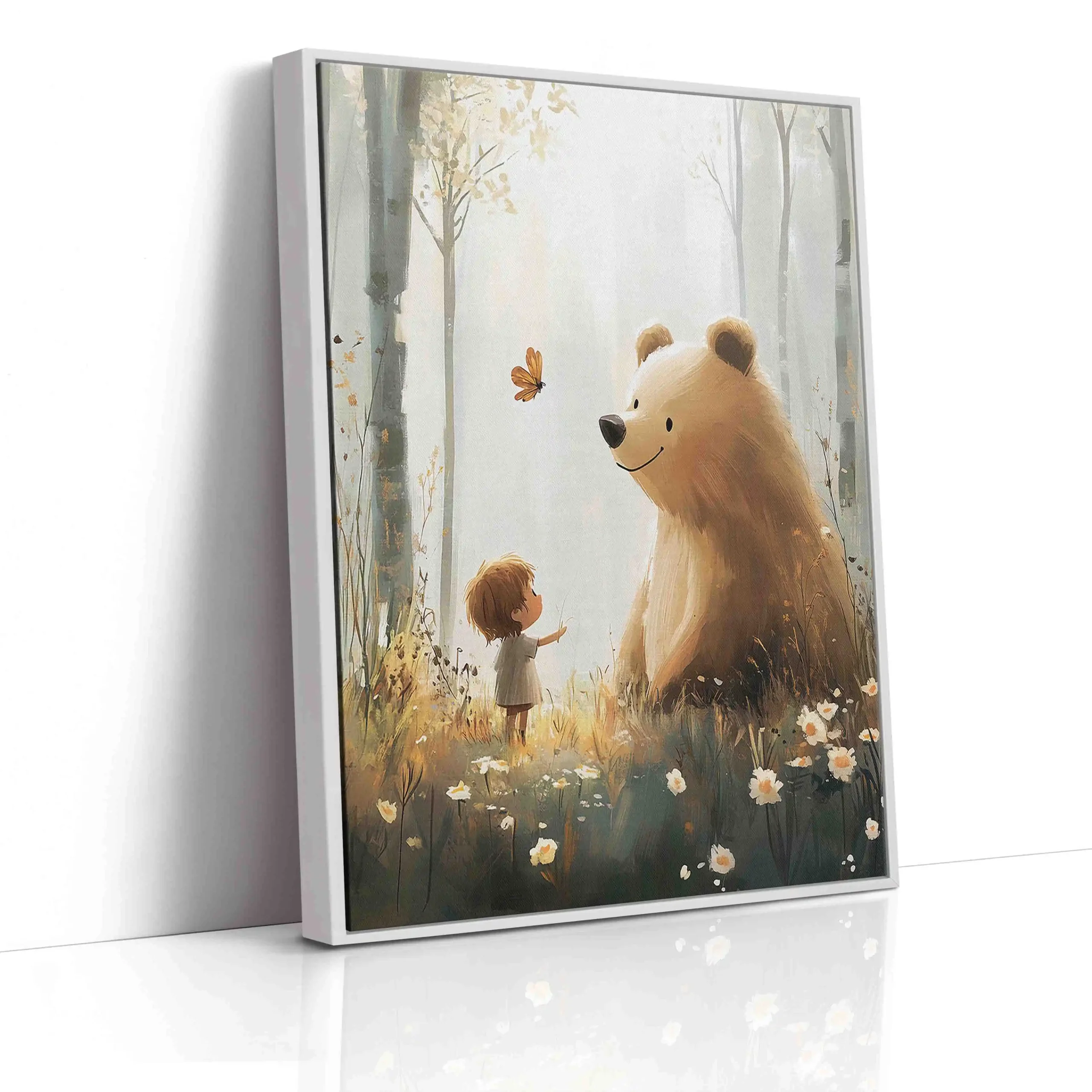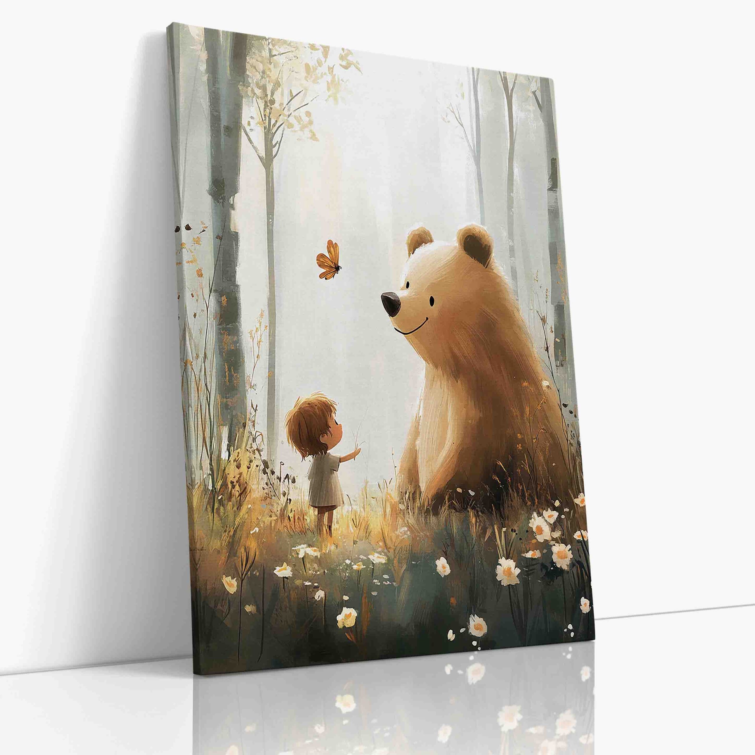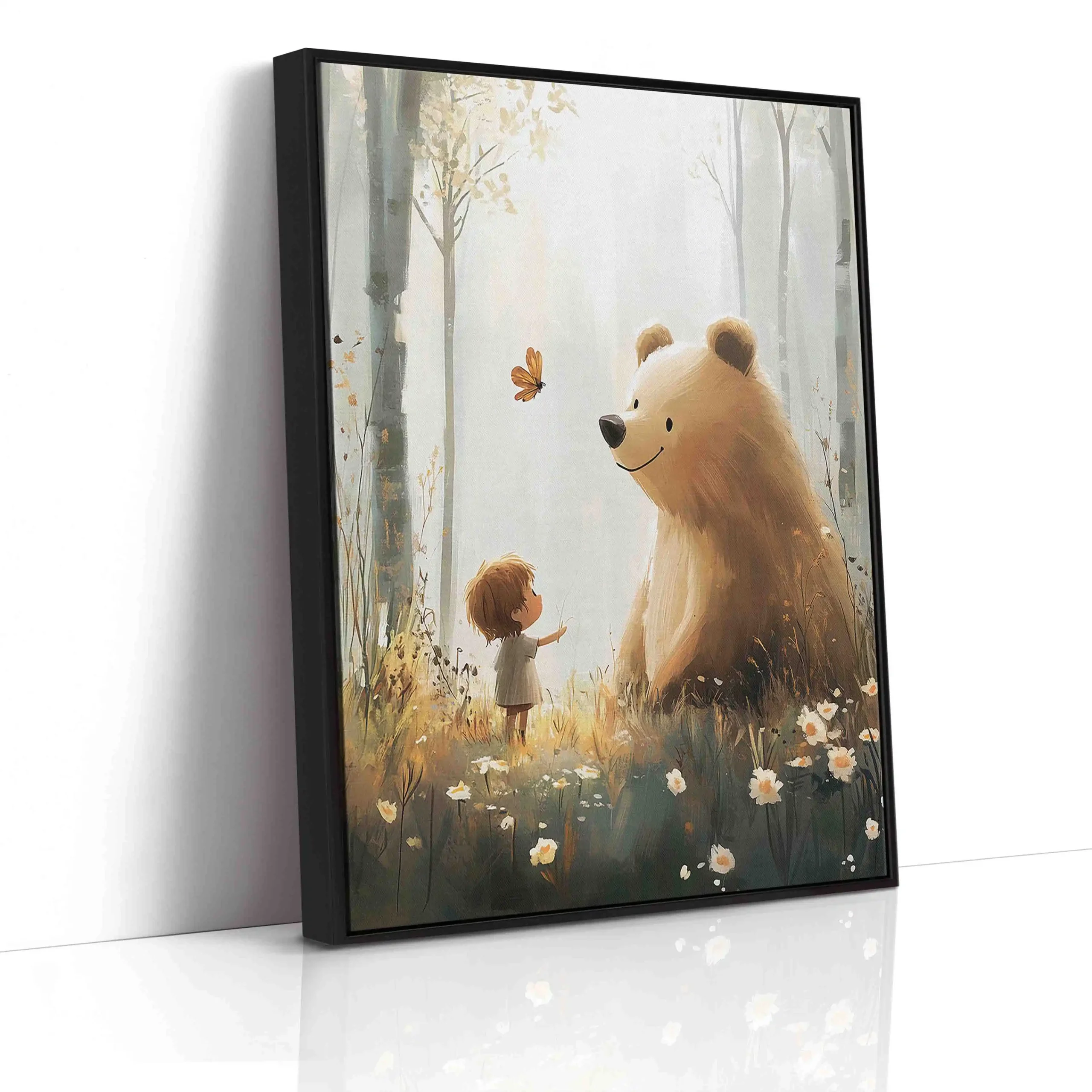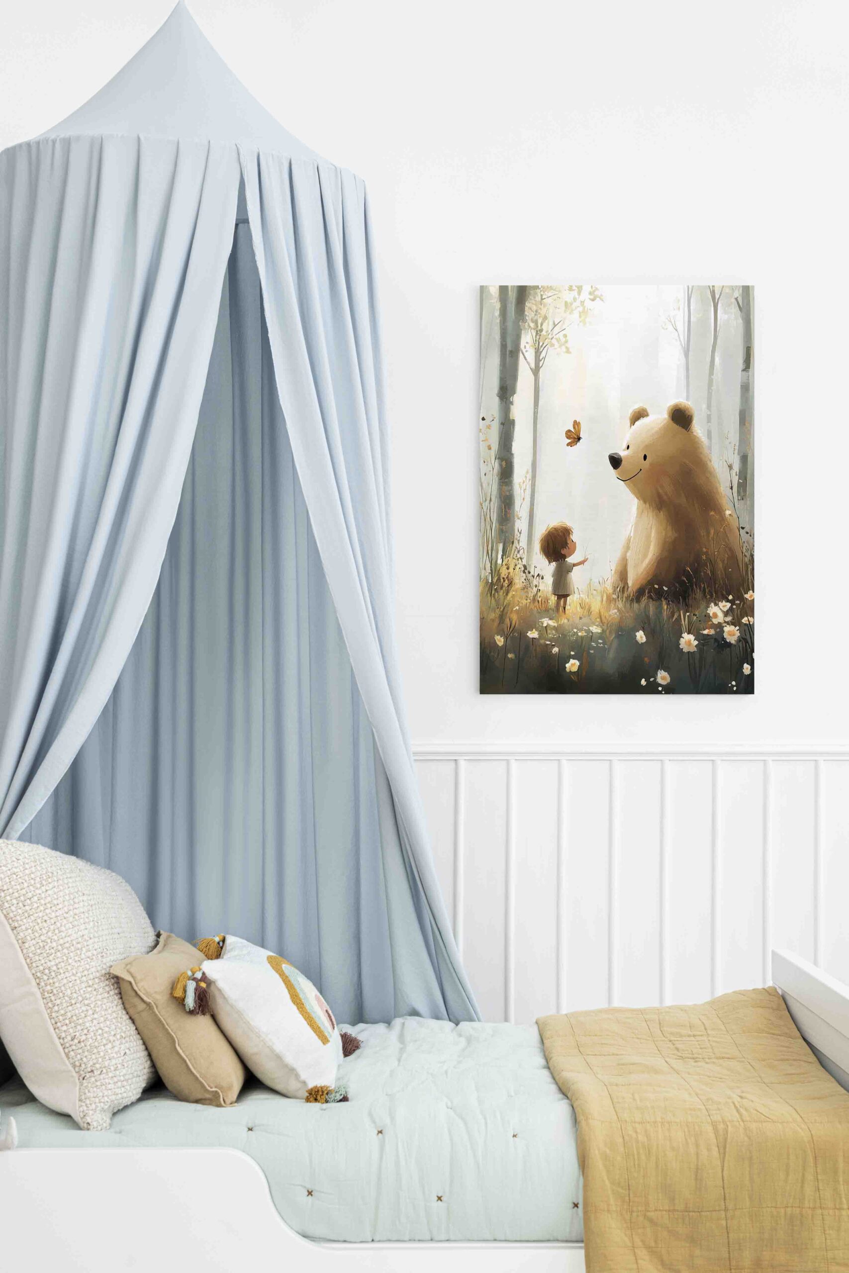 Magický obraz zachycující přátelství mezi medvídkem a dítětem probouzí fantazii a oslavuje kouzlo dětství. Tento okouzlující motiv na kvalitním plátně zobrazuje jedinečné pouto mezi dítětem a jeho plyšovým společníkem, které reprezentuje radost z dětské představivosti. Obraz podporuje snění a vytváří prostor pro vlastní příběhy vašeho dítěte. Jemné barvy a hravé detaily perfektně doplní jakýkoliv dětský pokoj. Ideální dekorace pro děti, které milují své plyšové kamarády.