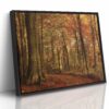 Vydejte se na poklidnou procházku podzimním lesem, aniž byste opustili pohodlí domova. Tento umělecký kousek dokonale zachycuje okouzlující lesní scenérii ve zlatavých tónech podzimu. Sluneční paprsky pronikají korunami stromů, vytvářejí magickou hru světla a stínů a poklidná atmosféra lesní cesty pokryté pestrobarevným listím vás přenesou do náruče přírody v jejím nejkrásnějším období. Tento obraz přinese do vašeho interiéru nejen krásu přírody, ale i uklidňující energii, která vás bude těšit v každém ročním období. Dopřejte si každý den kouzelnou atmosféru podzimu s tímto nadčasovým uměleckým dílem a probuďte v sobě pocity klidu, harmonie a nostalgie. Objevte podzimní kouzlo! Ideální volba pro milovníky přírody nebo jako stylový doplněk do obývacího pokoje, ložnice či pracovny.
