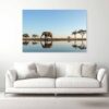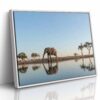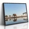 Podmanivý obraz zachycující poklidnou scénu slona odpočívajícího u jezera. Klidná vodní hladina odráží majestátní siluetu zvířete a vytváří dokonalou symetrii. Jemné odstíny modré a šedé vytvářejí harmonickou barevnou paletu, která přináší do interiéru klid a vyrovnanost. V pozadí se rýsují obrysy vzdálených kopců, což dodává obrazu hloubku a perspektivu. Kvalitní tisk na odolné plátno zajišťuje dlouhou životnost a věrné podání barev.