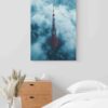 Mystická scenérie japonské metropole, kde se ikonická Tokyo Tower vynořuje z jemné ranní mlhy. Umělecké plátno zachycuje jedinečný okamžik, kdy se červená věž postupně odhaluje z křehké mlžné clony, vytvářející atmosféru naprostého klidu a tajemství. Jemné šedavé tóny ranního oparu kontrastují s jasně červenou barvou věže, která symbolizuje energii a sílu japonské kultury. Každý detail je precizně zpracován, od jemných struktur mlhy až po monumentální obrysy architektonického skvostu.