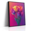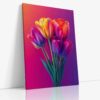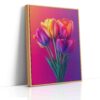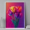 Oslnivý a radostný snímek tulipánů zachycených v bohatém spektru barev, vytvářející živou a dynamickou kompozici. Tento výjimečný obraz na plátně představuje ikonické jarní květiny v netradiční barevné interpretaci, kde se jednotlivé odstíny přelévají a vzájemně doplňují v harmonické symfonii. Precizní detail umožňuje pozorovat elegantní tvar a strukturu tulipánů, zatímco kreativní barevné pojetí přináší do interiéru energii a pozitivní náladu. Dokonalá volba pro moderní a odvážné prostory, které ocení kombinaci klasického květinového motivu s originálním uměleckým zpracováním. Tulipány symbolizující jaro a obnovu rozzáří jakýkoliv interiér.