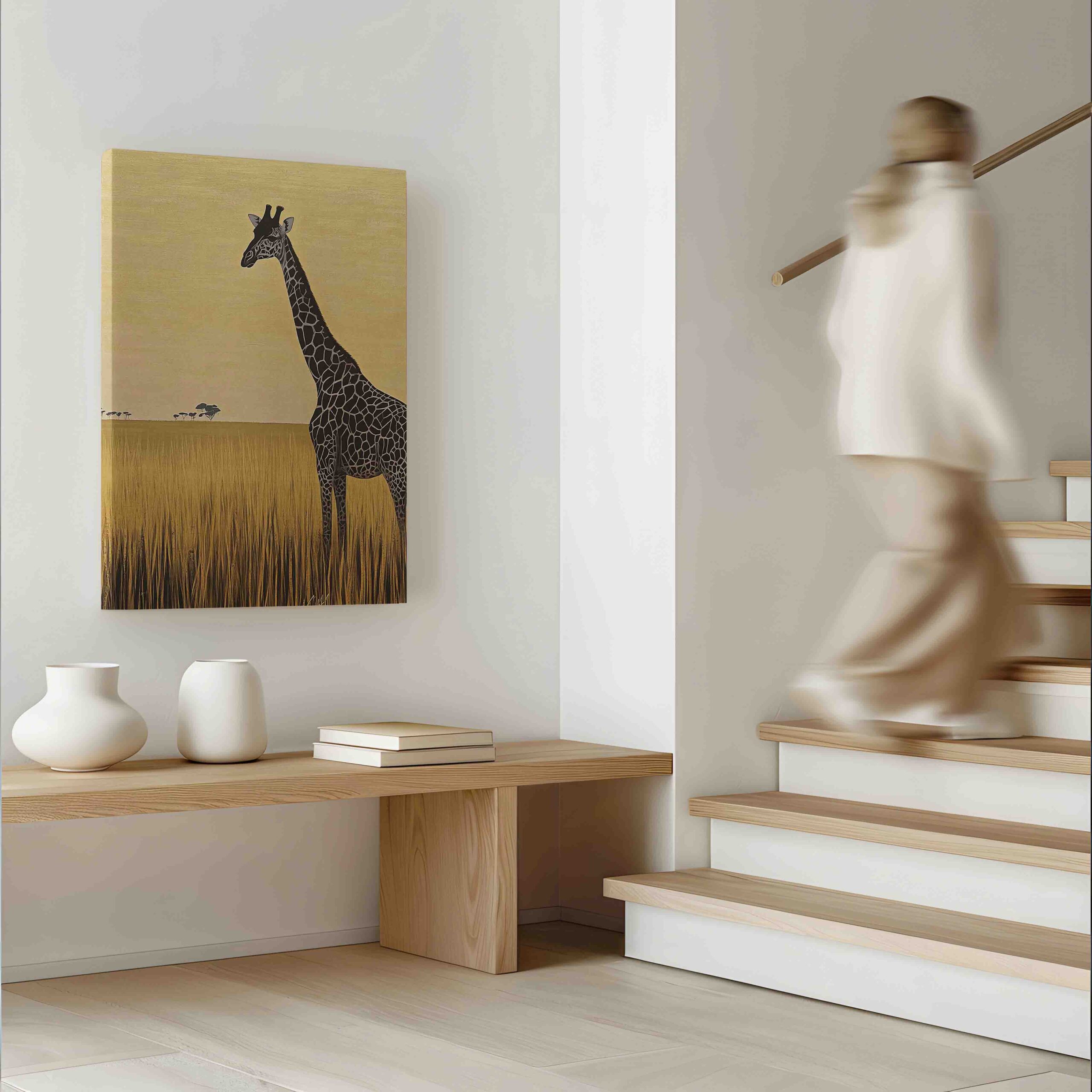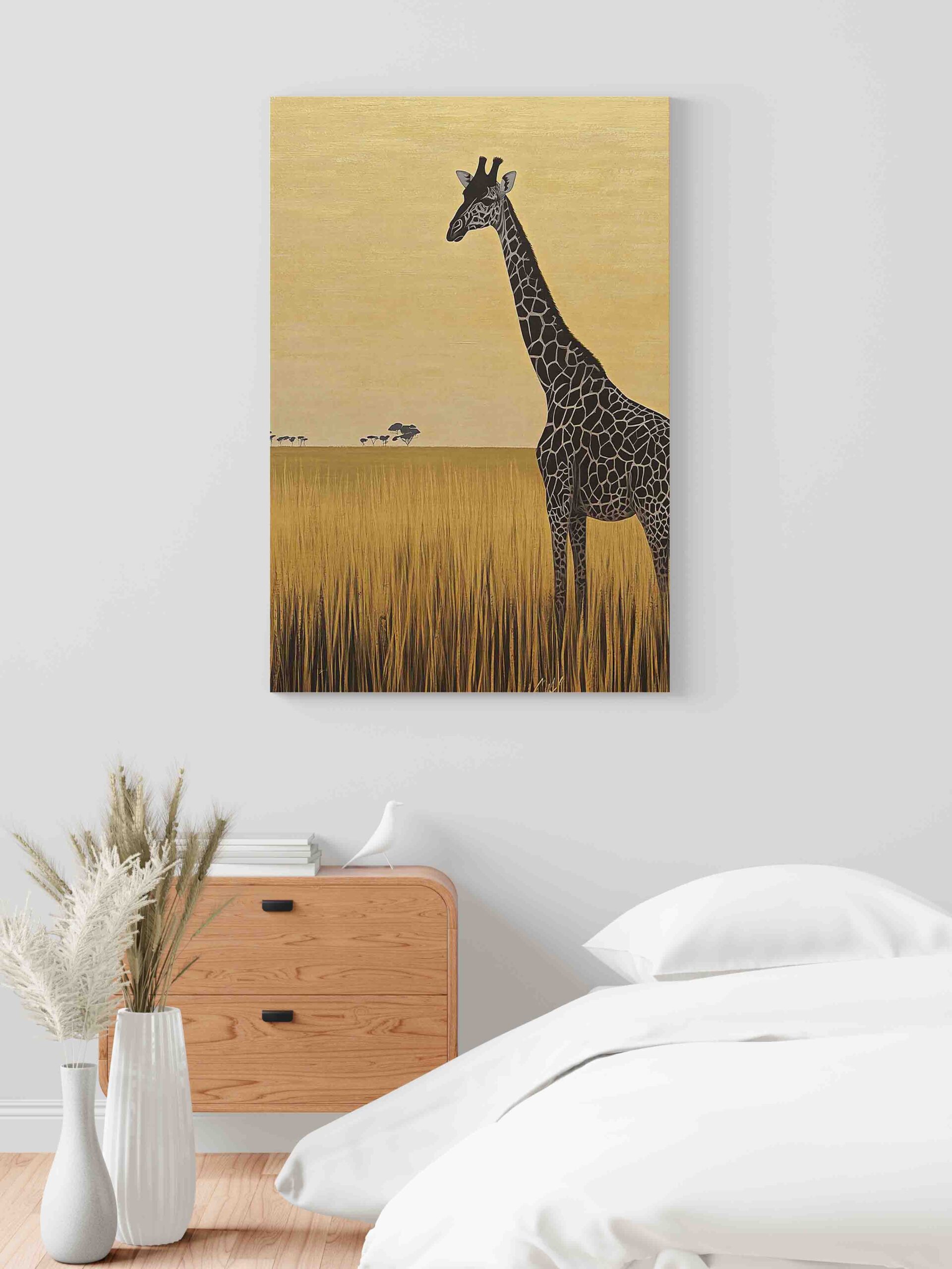 Nechte svůj domov ožít kouzlem divoké africké savany s naším exkluzivním obrazem „Žirafa ve žluté savaně“. Toto umělecké dílo zachycuje majestátní žirafu v její přirozené kráse, elegantně se tyčící nad zlatavou travnatou plání. Jemné odstíny žluté vytvářejí teplou atmosféru, která vašemu prostoru dodá nádech exotiky a klidu. Perfektní volba pro milovníky zvířat a přírodních motivů, kteří chtějí svůj domov nebo kancelář ozvláštnit autentickým a stylovým dekorativním prvkem. Kontrastní kombinace žlutého pozadí a majestátní žirafy vytváří působivý vizuální efekt, který upoutá pozornost v každém prostoru.