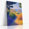 Okouzlující pointilistický obraz zachycující malebnou vesničku rozkládající se na pobřeží s plachetnicí v popředí. Tisíce drobných teček vytvářejí živou atmosféru přímořského života, kde modré tóny moře kontrastují s bílými domky a barevnými detaily vesnického života. Technika pointilismu dokonale vystihuje třpyt moře, poklidný rytmus vesnice a eleganci plachetnice. Tento obraz na kvalitním plátně přinese do vašeho interiéru středomořskou atmosféru a romantiku námořních výjevů.