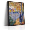 Půvabný pointilistický obraz zachycující ženu odpočívající u malebného břehu řeky. Pomocí tisíců drobných barevných teček autor mistrně vykresluje klidnou atmosféru, hru světla na vodní hladině a jemné detaily postavy i okolní přírody. Technika pointilismu dodává obrazu jedinečnou živost a hloubku, která fascininuje při každém pohledu. Tento umělecký kousek na kvalitním plátně přinese do vašeho interiéru klid a harmonii.